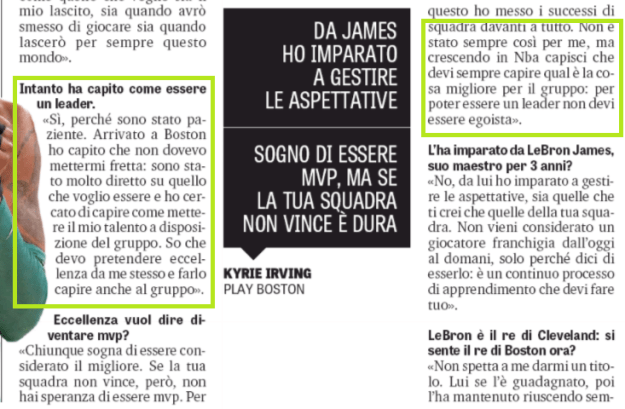 KYRIE IRVING, Playmaker dei Boston Celtics, GAZZETTA DELLO SPORT 11-01-2018